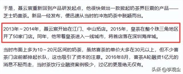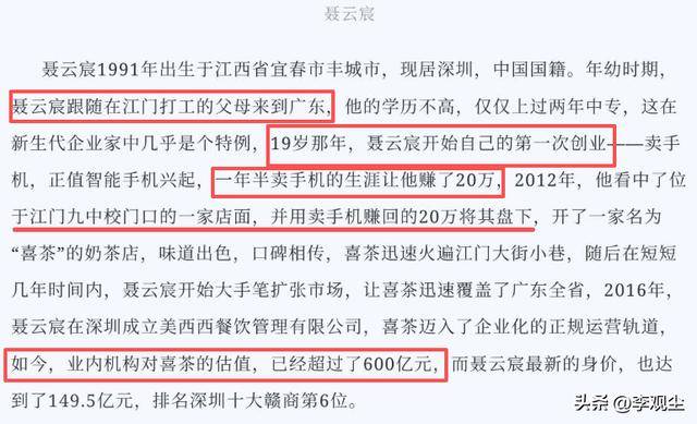 ,同样引发排队狂潮;到2021年,喜茶估值已高达600亿,29岁的聂云宸也以超过40亿元的身家登上深圳创富百人榜,成为榜上最年轻的白手起家富豪。