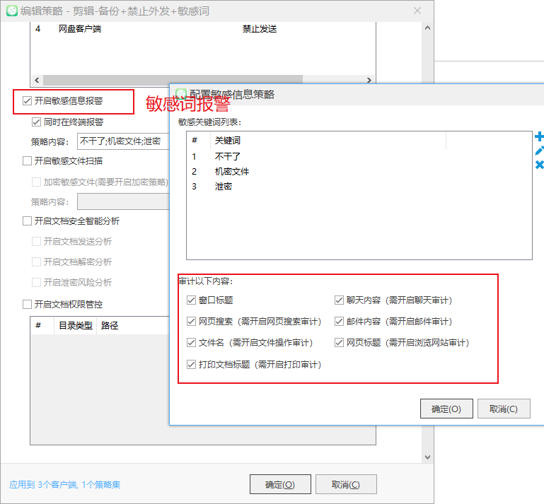 软件支持自定义敏感词库,可添加行业术语、客户信息、财务数据、涉密项目名称等关键词。