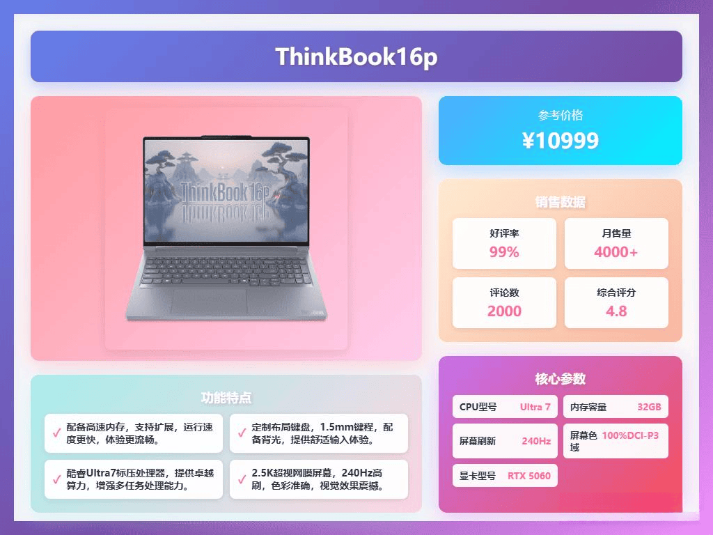 如果你对游戏性能和屏幕素质有较高要求,同时预算充足,ThinkBook 16p凭借其RTX 5060显卡和2.5K高刷屏,能带来更畅快的游戏体验和出色的视觉效果。