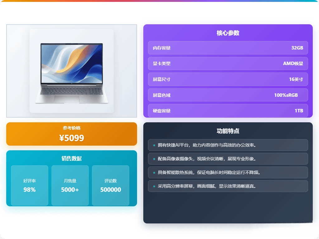 如果你需要一台全能型的生产力工具,同时对AI应用有较高需求,惠普战66 16英寸锐龙版将是一个不错的选择。其锐龙标压处理器和AI智能平台能显著提高工作效率。