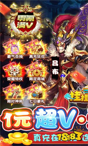 《挂挂三国(1元超V)》2023年全新超V版本震撼来袭! 三国题材+放置挂机,福利全面提升,养成更加佛系,每天上线五分钟即可快速完成日常任务! 抽卡门槛大大降低,海量资源点击就送,轻松获得三国世界各种名将,无需爆肝也可尽享完美游戏体验。 版本之子7星神将赵云保驾护航,祝您在三国乱世中封王称帝!